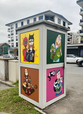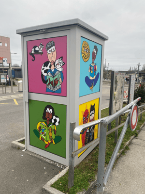 Décorations des boîtes à livres de la Commune de Bussigny (VD). Réalisation: Polygravia